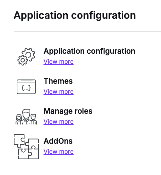 In the lower part of the page, locate the **Application configuration** section and click on AddOns.
