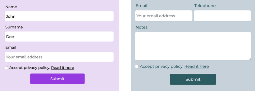 To see them in action, you can find a few examples on [our dedicated GitHub page](https://dam.beefree.io/githubbeeforms). Head over to [allowed form fields](https://docs.beefree.io/beefree-sdk/~/changes/480/forms/integrating-and-using-the-form-block/allowed-form-fields) if you need the full list of **allowed field types**, along with the available attributes and options for each of them.