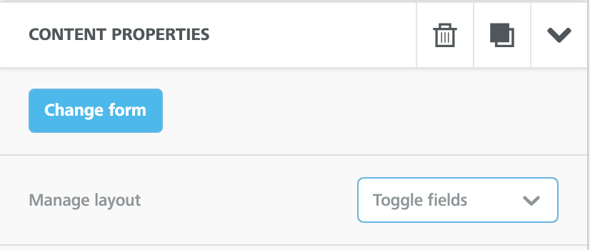 The default form you pass to a Beefree SDK application may consist of a simple form (e.g., the most used one), or a longer form that the user can customize using the options in the form content properties, as pictured here: