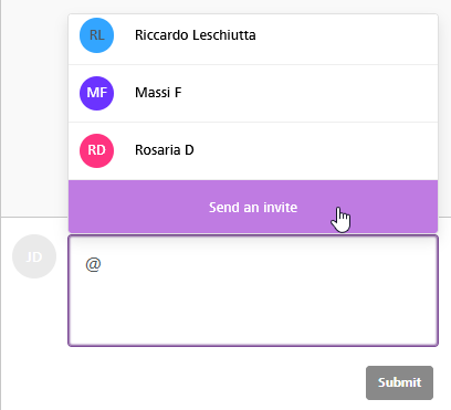 If you have implemented mentions, users can type @ to bring up a list of contributors and tag them in the comment. If the user starts typing, the list will be filtered If you’ve built a notification system around Commenting, you can use this piece of information to trigger a notification towards the mentioned person.