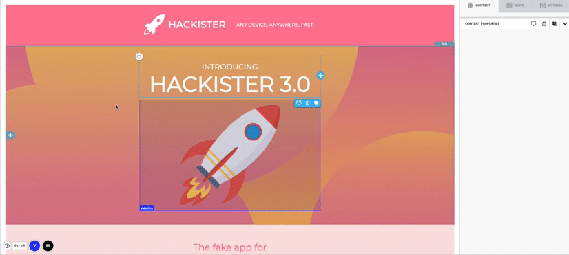 When opening an email, a landing page or a popup, a contributor can add a new comment to a content block or a row by clicking the “Balloon” icon, available in two spots: