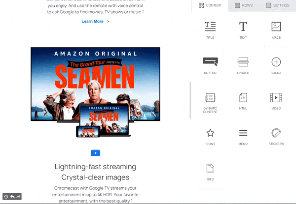 This feature is available on Beefree SDK [Core plan](https://developers.beefree.io/pricing-plans) and above. Upgrade a [development application](https://docs.beefree.io/beefree-sdk/~/changes/480/getting-started/readme/development-applications) at no extra charge to explore features from higher plan tiers. **Note:** Usage on a development application still counts toward [usage-based fees](https://devportal.beefree.io/hc/en-us/articles/4403095825042-Usage-based-fees) and limits.
