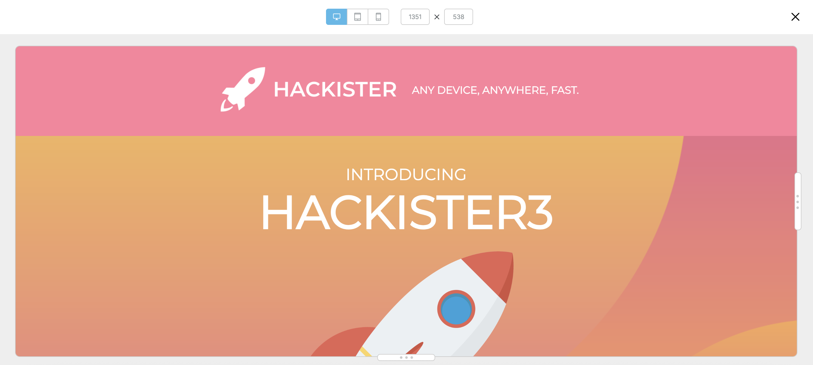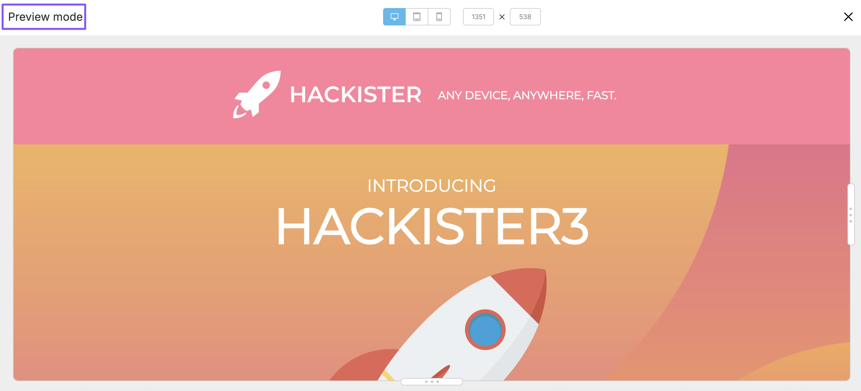 The Desktop, Tablet, or Mobile view is available by default on the Preview page. End users can select between devices to preview how their designs will look across all devices.