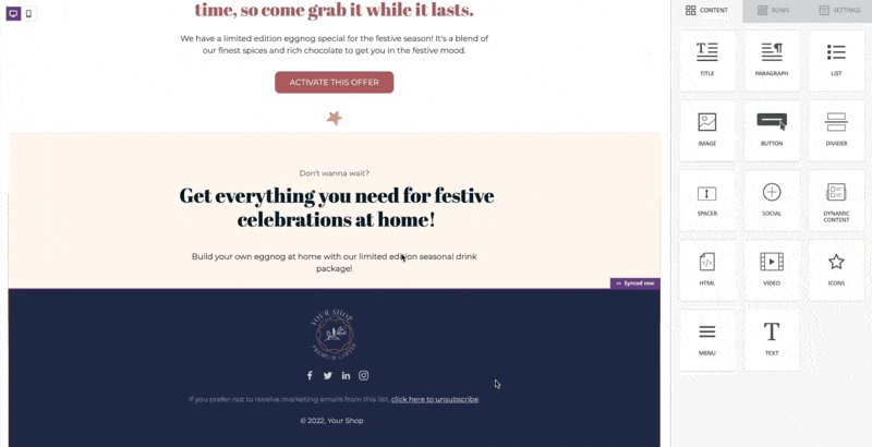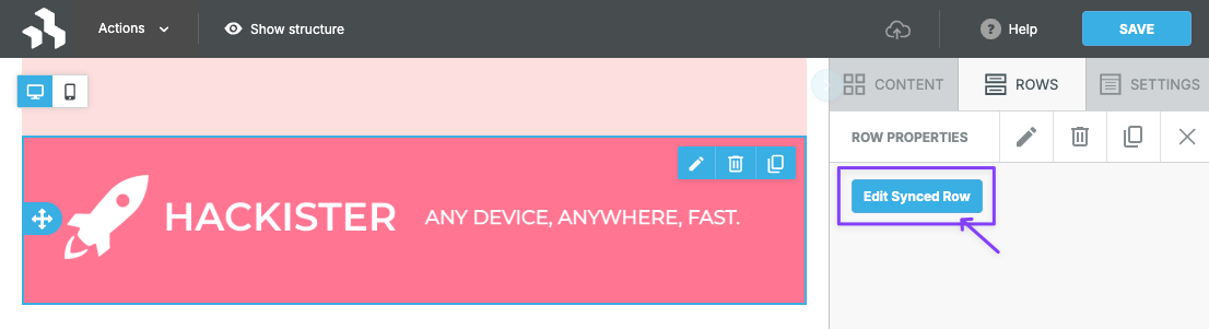 * Redirecting to the [Edit Single Row Mode](https://docs.beefree.io/beefree-sdk/~/changes/480/rows/reusable-content/sync/initialize-edit-single-row-mode) builder to edit the Synced Row, and save changes applied globally.