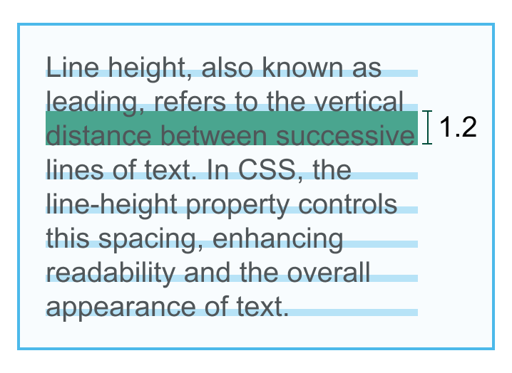 Line height measures the distance from one line’s text baseline to the next line’s text baseline. The following image shows an example of how Line height is measured.